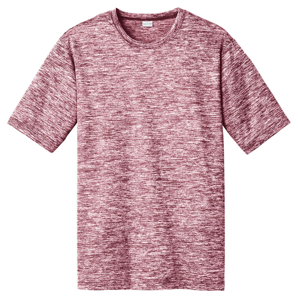 Do moisture laden t-shirts bog you down whenever you need to ramp up the competitive juices? Sport-Tek Men's Maroon Electric PosiCharge Electric Heather Tee contain moisture wicking technology that quickly evaporates perspiration the instant it forms on your skin. The result is a cooling of the skin that invigorates your body. Set-in sleeves allow for more arm movement, which comes in handy on the golf course and tennis court. The super soft fabric endures countless wash and dry cycles, without any of the colors fading. One-hundred percent rugged polyester interlock resists rips and tears. Attach your company logo to the t-shirts to spread the word about your brand.Corresponding Women's Style: Sport-Tek Women's Maroon Electric PosiCharge Electric Heather Sporty Tee