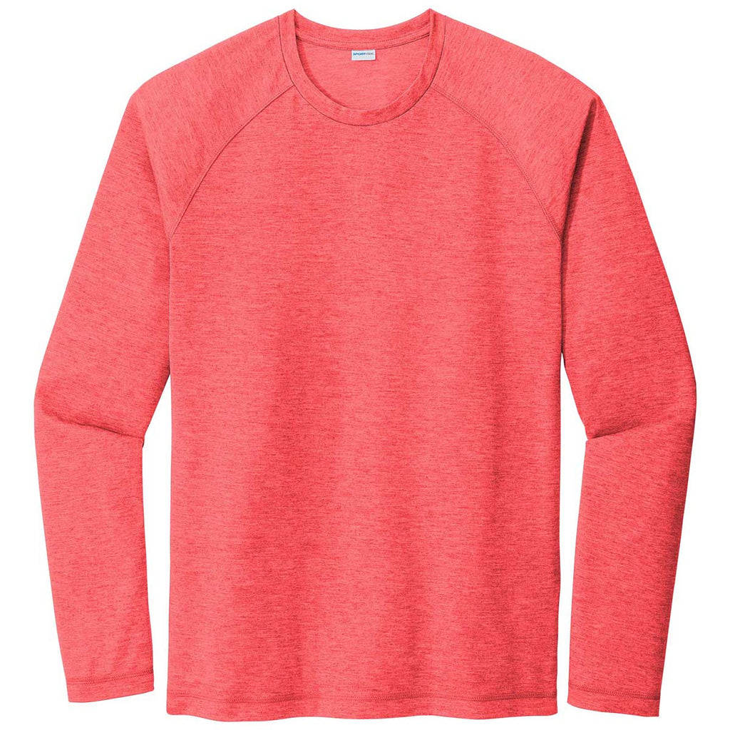 Sport-Tek Men's True Red Heather PosiCharge Long Sleeve Tri-Blend Wicking Raglan Tee