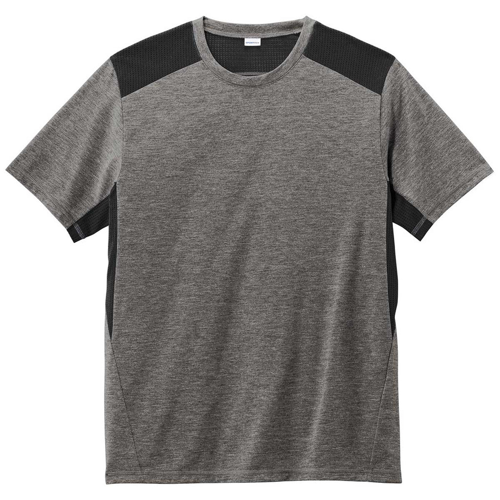 Sport-Tek Men's Black/Dark Grey Heather PosiCharge Tri-Blend Wicking Draft Tee