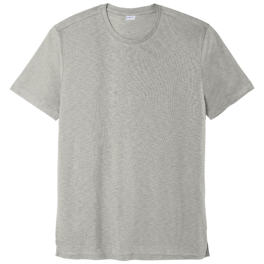Design your screen print for the Sport-Tek Men's Silver PosiCharge Strive Tee that was inspired by current streetwear. The elevated heathered tee is moisture wicking and comes in vibrant color options. The lightweight, short-sleeve tee offers cotton with PosiCharge technology with set0in sleeves and a tearaway label. Add a custom logo to create your own section of streetwear for your logoed apparel line or a company logo to use as employee apparel for those working in a trendy environment. Great for layering or wearing alone, this tee can go from home to an evening with friends in a heartbeat.Highlights