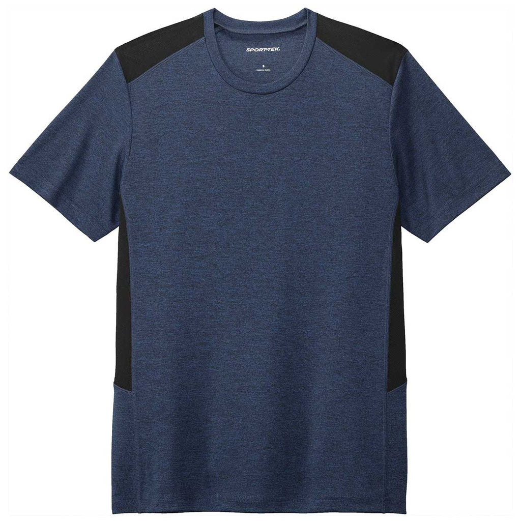Look and feel great in a custom logo Sport-Tek Men's Dark Royal Heather/Black Endeavor Short Sleeve Tee. This unique tee has a subtle heather coloring that helps you stand out whether in the office or at the gym. Add a heat transfer company logo to use these for company uniforms or a custom design to utilize as employee gifts. Moisture wicking technology and breathability make these perfect for team events. The small extras like a tag free label and mesh panels at the shoulders and underarms mean you and your teammates will enjoy freedom of movement while staying cooler than the competition.Corresponding Women's Style: Sport-Tek Women's Dark Royal Heather/Black Endeavor Short Sleeve Tee