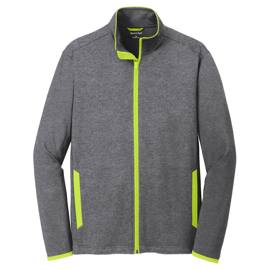Sport-Tek Men's Charcoal Grey Heather/ Charge Green Sport-Wick Stretch Contrast Full-Zip Jacket