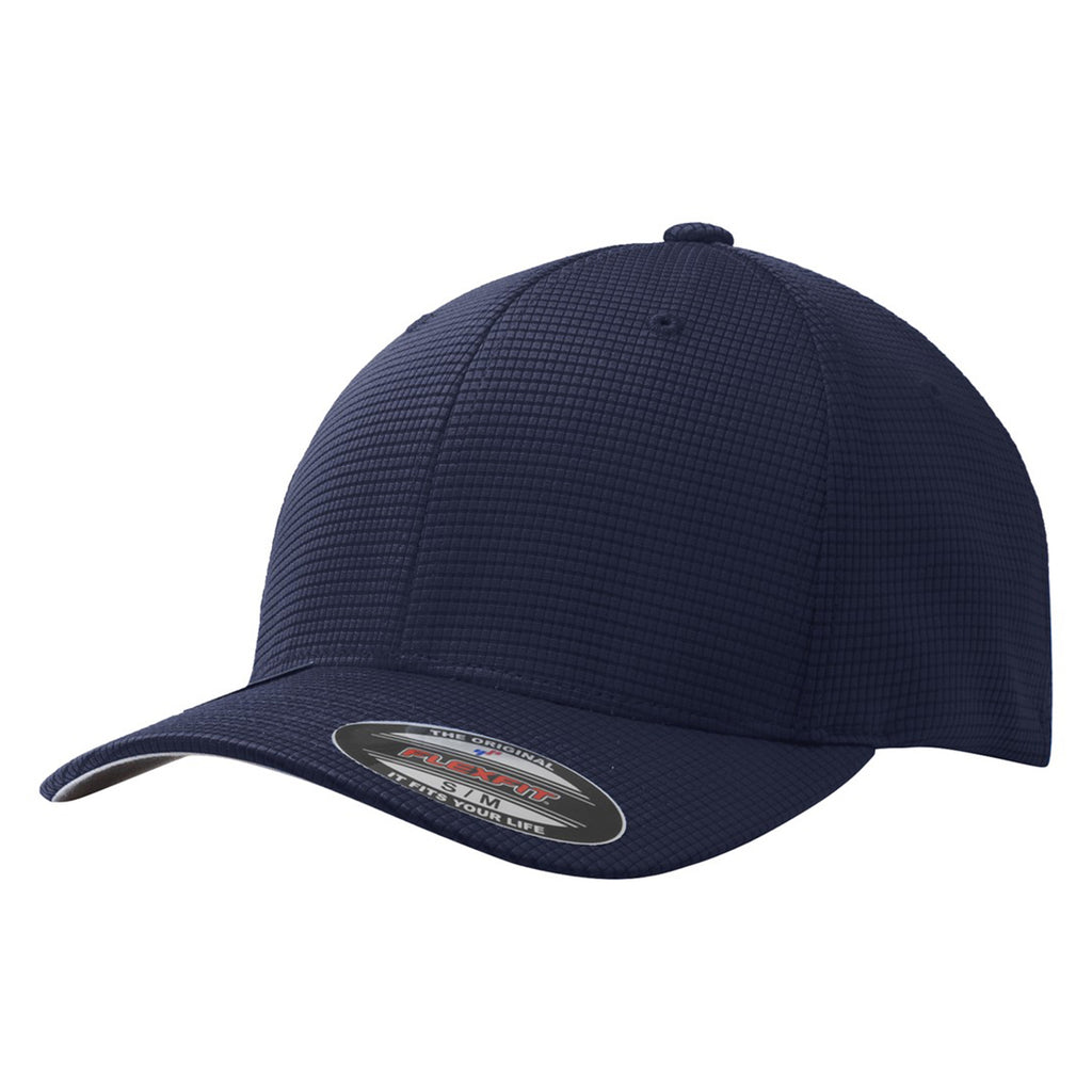 Sport-Tek True Navy Flexfit Grid Texture Cap