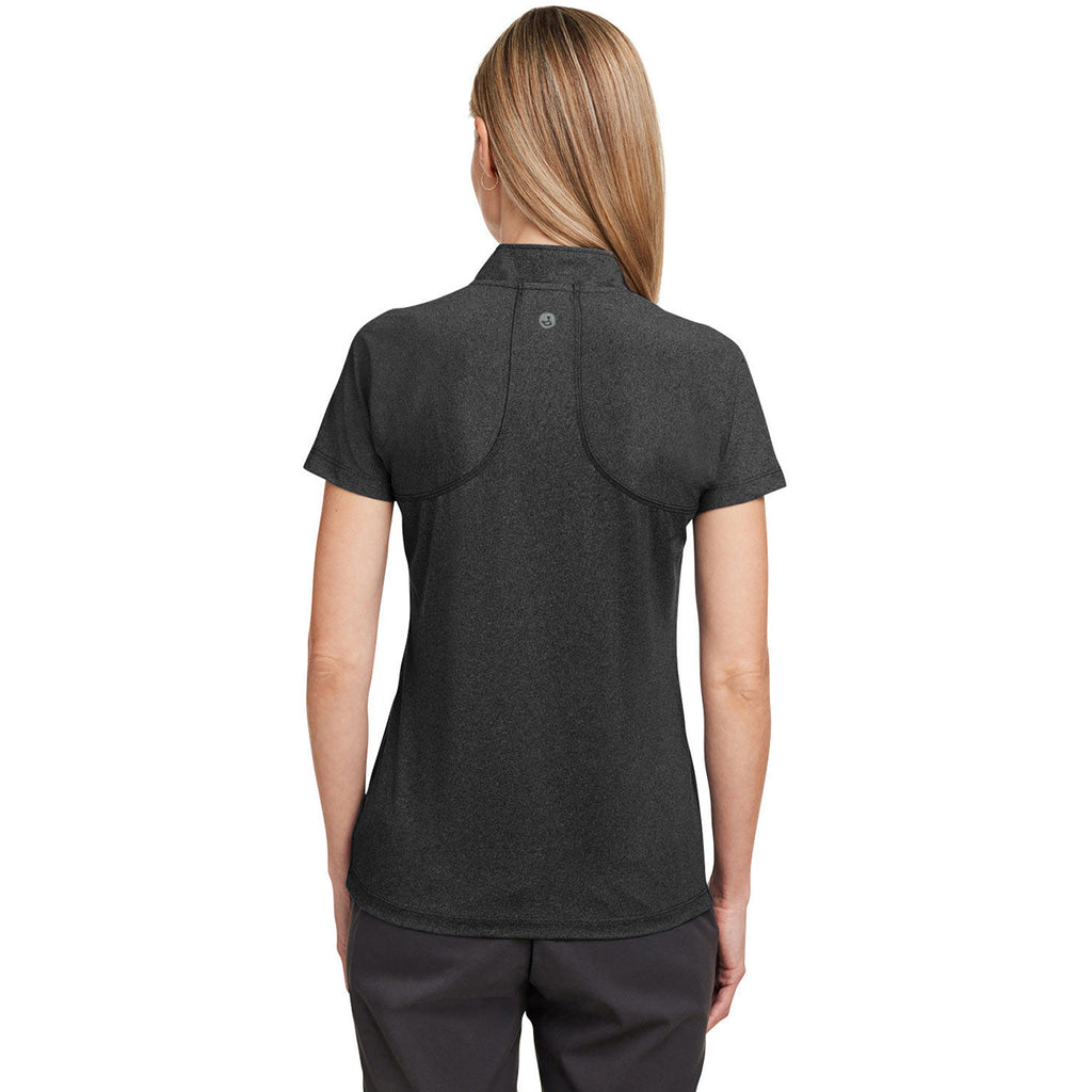 Swannies Golf Women's Black Heather Quinn Polo with a custom logo is the updated style any woman can love. The hidden zipper mock neck adds a bit of style to the polo, whether practicing your backswing, hitting the range, or hanging out with friends. Full stretch allows you to move in any way you need to play your best. Place an order today.