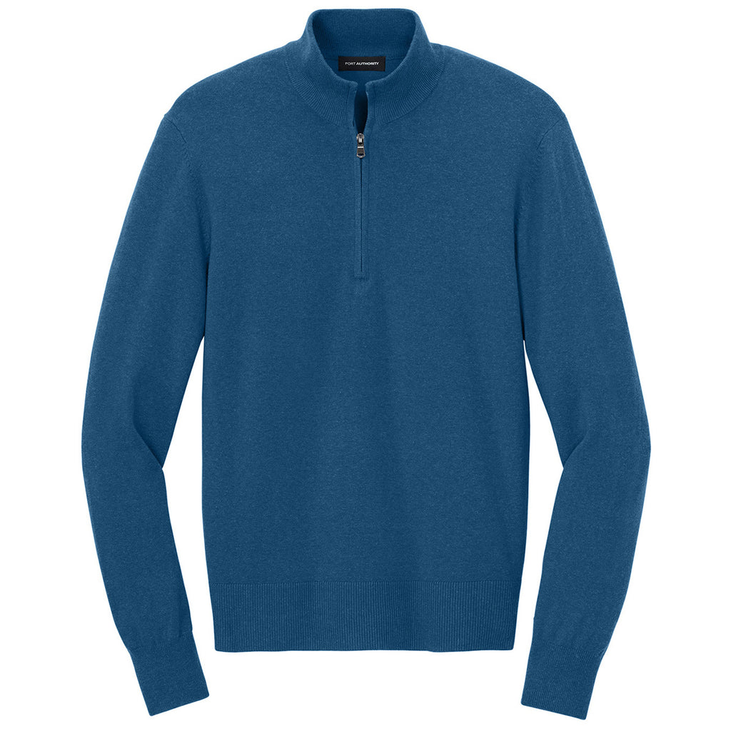 Look and feel great with a corporate logo on the Port Authority Men's Aegean Blue Heather Easy Care 1/4-Zip Sweater. This sleek business casual sweater is a must have for those working in the office or those who take meetings after hours with clients. The comfortable go-to will be an instant favorite no matter where your day takes you.Highlights