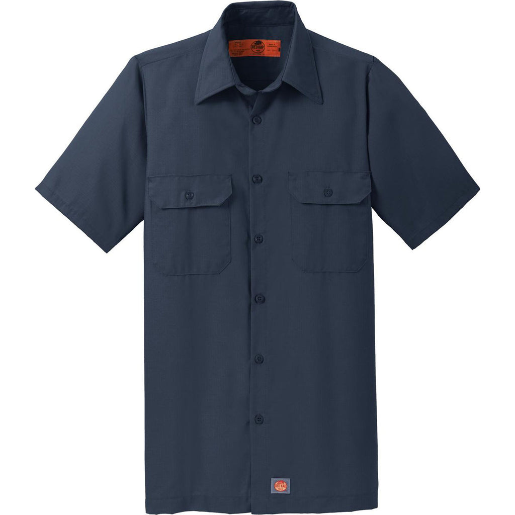 It may look casual and even office-ready, but where it counts, this Red Kap Men's Navy Short Sleeve Solid Ripstop Shirt is all blue collar. And that's good news, because your work space isn't always computers and spreadsheets. Sometimes it means getting your hands dirty. With the lightweight poly/cotton poplin ripstop fabric you see here, you'll have a dress shirt that does more than just look good-it also offers garage-ready function at a moment's notice. Simply add your custom logo to this shirt, and you'll add your brand to a blue-collar shirt that works as hard as you do.Highlights