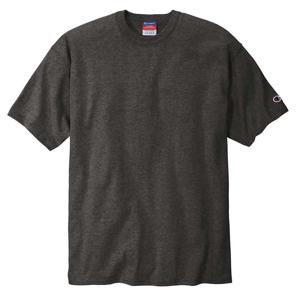 Keep it simple with a custom logo Champion Men's Charcoal Heather Heritage 7-oz Jersey Tee in a variety of colors and sizes. Made of cotton or a cotton rich blend depending on color, this tee is perfect as company uniforms or to use to support a team event. Your company logo will stand out on the cotton rich tee with bound, ribbed crewneck and deep armholes for comfort. Add a design that you create to give as unique employee gifts that will be well worn. A good tee is a staple in most wardrobes and the Champion tee is one of the best.