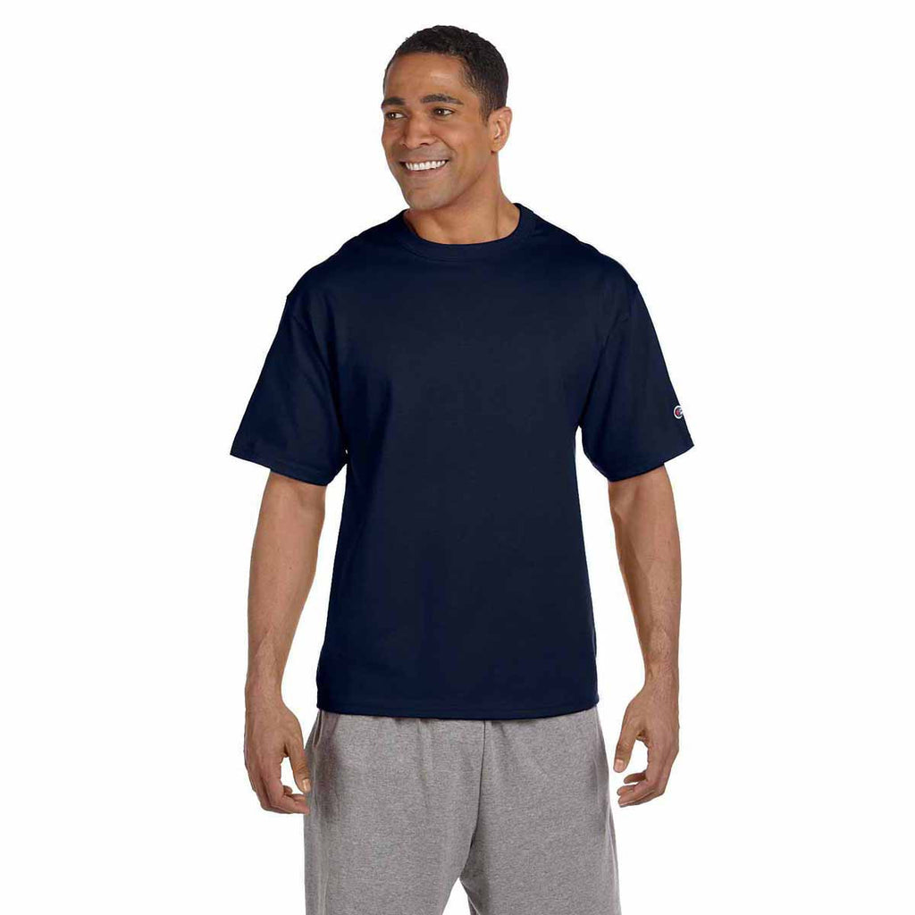 Champion embroidered shirts act as walking advertisements for your company. Add a custom logo to the Champion Men's Navy Heritage 7-Ounce Jersey T-Shirt and watch awareness of your brand soar. Whether you wear the 100% cotton shirt during a softball tournament or at an industry networking event, you create a cost-effective way to market your company. The soft cotton ensures you remain comfortable throughout the day. Wear the Champion Heritage Jersey T-Shirt as a first layer or as a single layer. The double needle sleeves and bottom hem ensure long lasting durability.