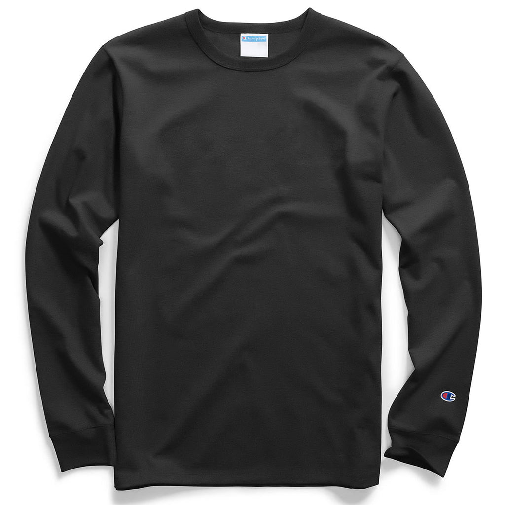 Choose your custom screen print for the Champion Unisex Black Heritage Long-Sleeve T-Shirt for a versatile look that can serve multiple purposes. Try out a company logo to use as employee apparel or to promote your business or cause at special events. Try a custom logo to create a look for a family reunion or team event with this 100% cotton jersey, long-sleeve tee that is comfortable and convenient. Ribbed collar and cuffs complete the look that is easy to wear alone or layer.