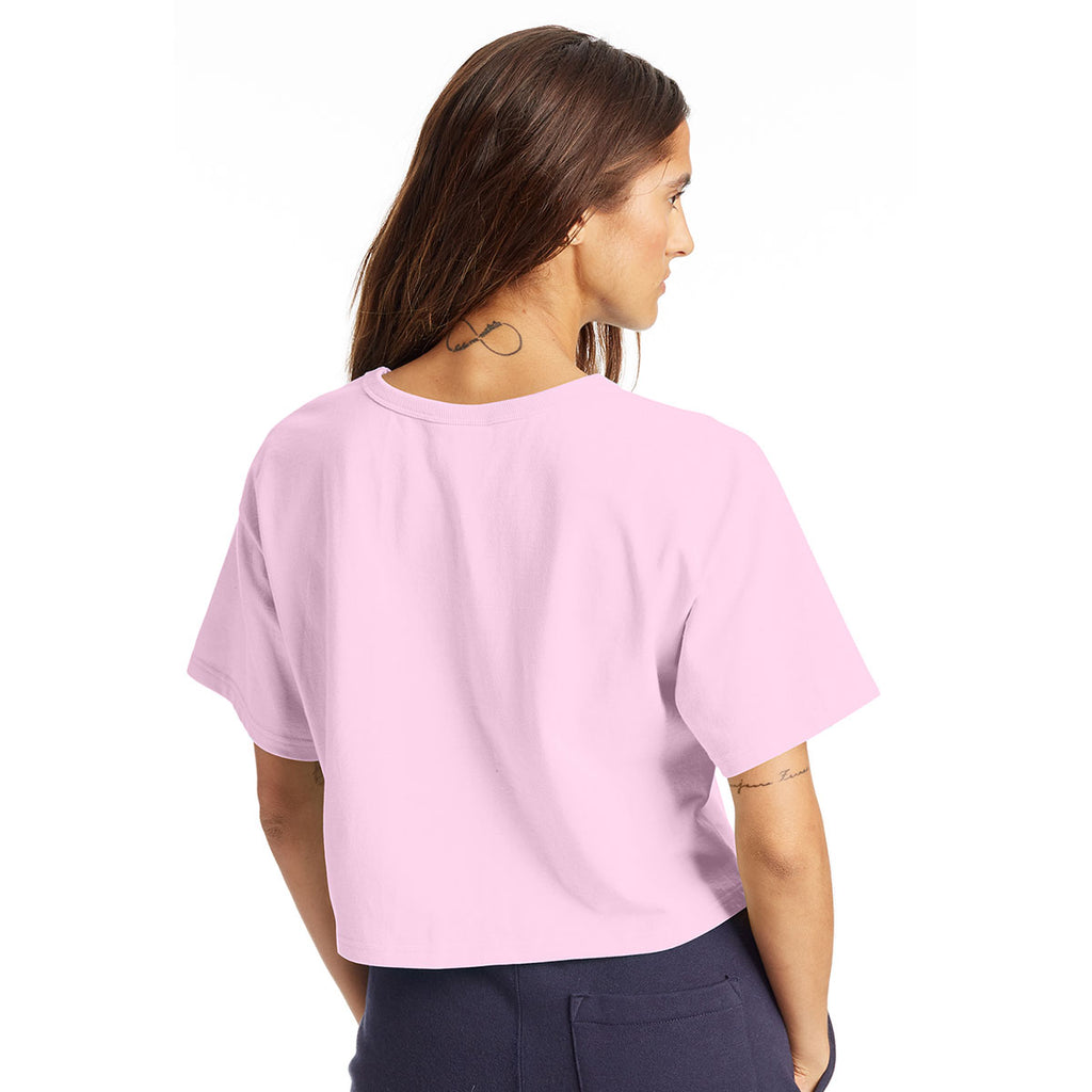 Champion Women's Pink Candy Cropped Reverse Weave T-Shirt