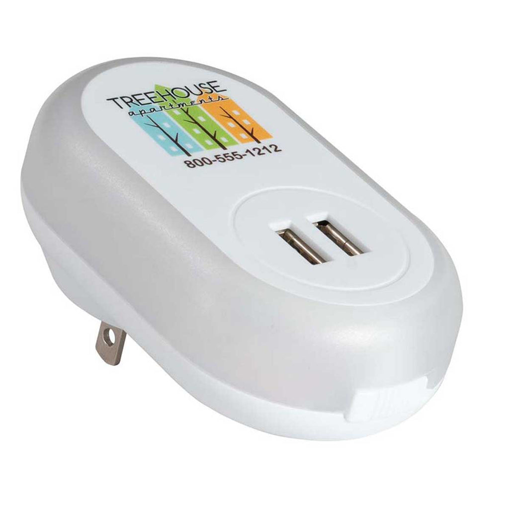 Plug this custom Innovations White Night Light Wall Charger and turn any socket into an instant charging point for your USB charging devices. The device lights up too, which makes them perfect at night. But what makes them even better is the fact that the device can be used as an event giveaway or employee gift to promote your brand. Simply add a custom printed logo of your company!The minimum order for this product is 25 pieces.