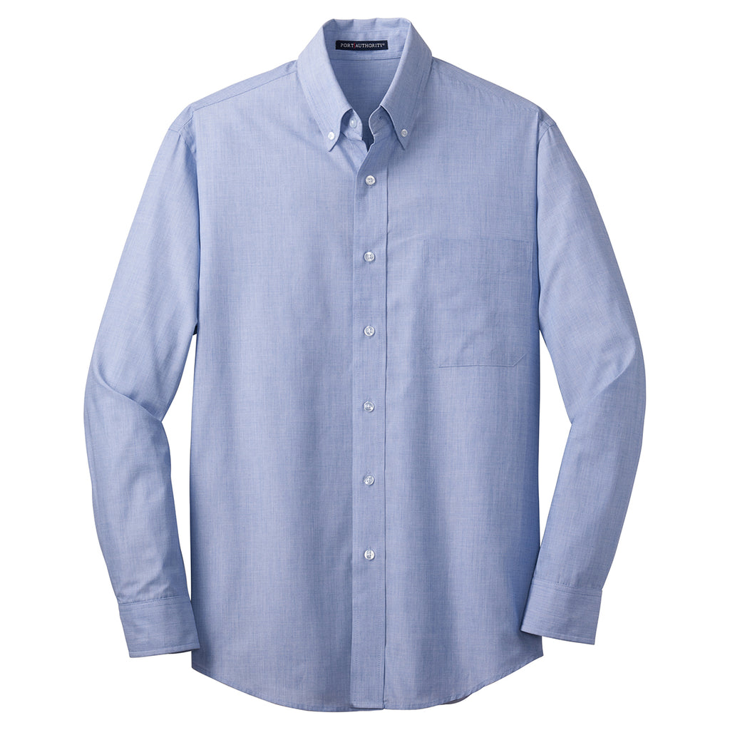 Conveying a sense of atmosphere and professionalism at the workplace might seem easy...until you start to contemplate what a good employee uniform might really look like. Then you realize there's one key phrase: dress shirts. This Port Authority Men's Chambray Blue Tall Crosshatch Easy Care Shirt will provide the corporate apparel you need to create that atmosphere of professionalism. With your company logo affixed to the front, your employees can represent your brand without sacrificing their professionalism or their comfort.Highlights