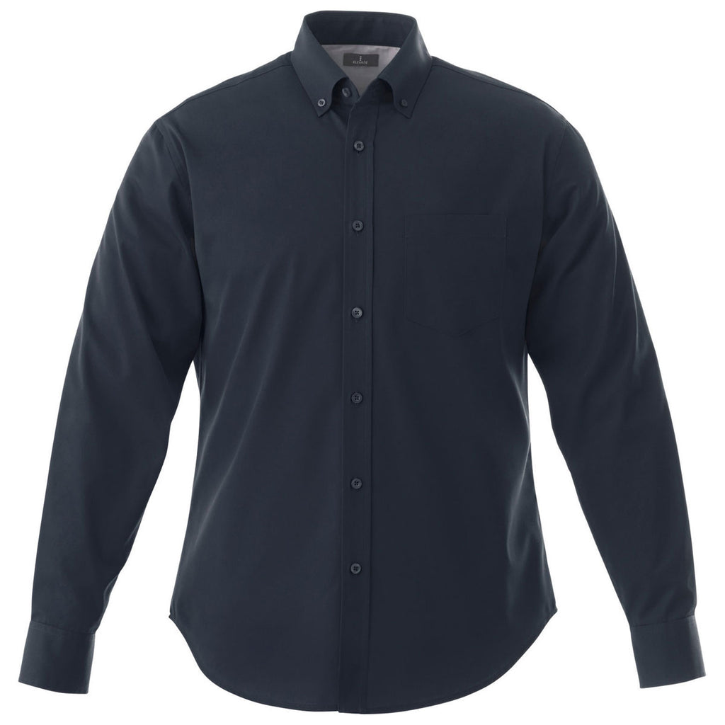 The Elevate Men's Navy Wilshire Long Sleeve Shirt with your custom logo on it can be perfect as part of a work uniform or as a gift for your loyal employees. It features a left-chest pocket and center-back box pleat. This classic shirt will give your employees a stylish and sophisticated look. They can wear it to work or when they are having a dinner in with their friends and family. It comes in a variety of colors, so choose the one which suits your company the best. This high-quality item will serve your employees for years to come.Corresponding Women's Style: Elevate Women's Navy Wilshire Long Sleeve Shirt