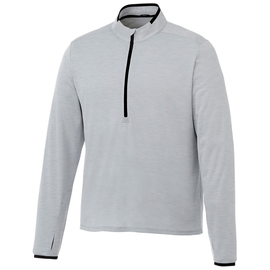Add a company logo to the Elevate Men's Light Heather Grey Mather Knit Half Zip to use as a corporate uniform that is easy to wear and care for while keeping the look professional. Ideal for those who have to work in different homes, this half zip is easy to layer over another shirt while being easily identifiable by clients. The fabric is moisture wicking and breathable to keep you cool and comfortable, but has a chin guard to hold in warmth when the weather is unpredictable. Snag resistance is perfect for daily wear even when moving around or working.Corresponding Women's Style:Elevate Women's Light Heather Grey Mather Knit Half Zip