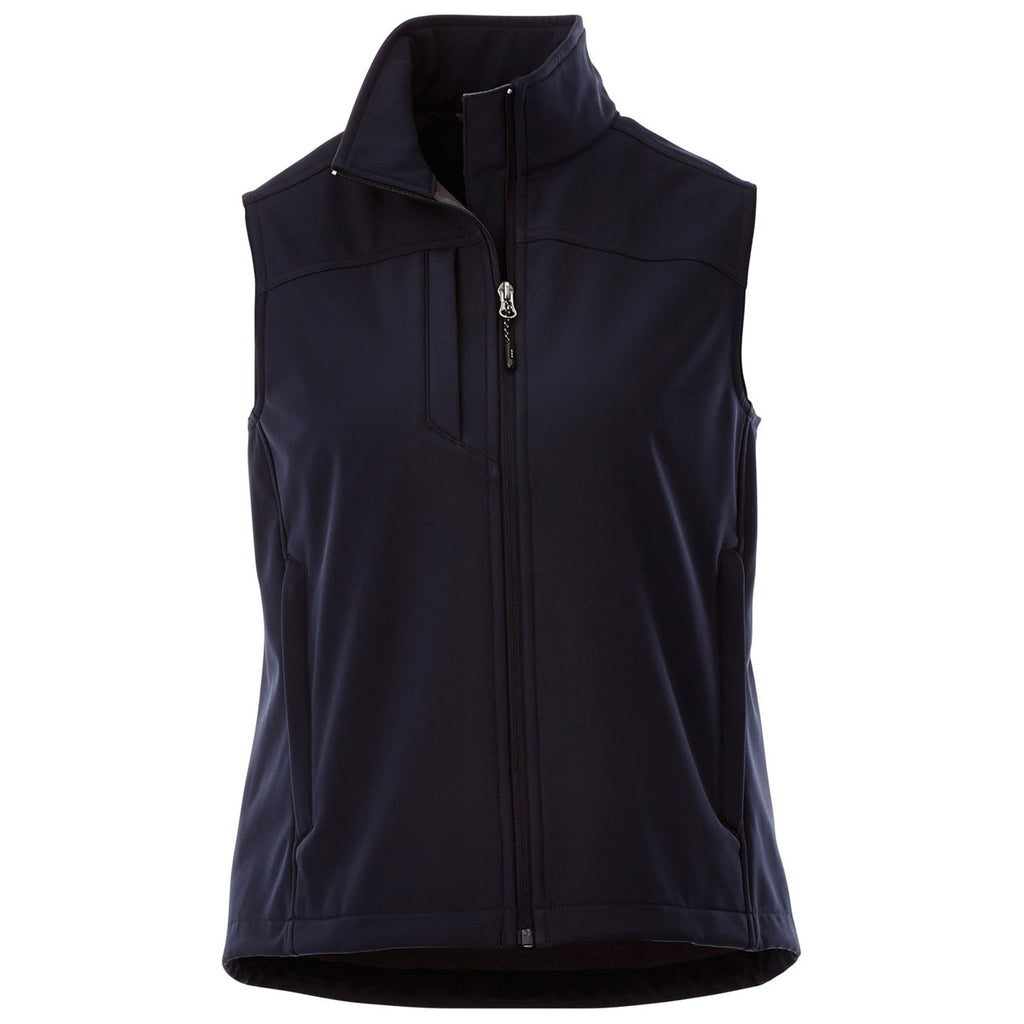 If you want to show your employees you appreciate them, the Elevate Women's Navy Stinson Softshell Vest with your custom logo makes a perfect gift. They will surely use it during chilly spring and autumn days. It is perfect for layering over a lightweight fleece, this softshell vest has a waterproof, breathable membrane and a water repellent finish. It is ideal apparel item for hiking, playing sports, watching the game, shopping and picking kids up from school. Whenever they need that extra layer, your employees will choose the Elevate Women's Navy Stinson Softshell Vest. Wherever they go, they will advertise your brand in a subtle yet effective way.Corresponding Men's Style:Elevate Men's Navy Stinson Softshell Vest