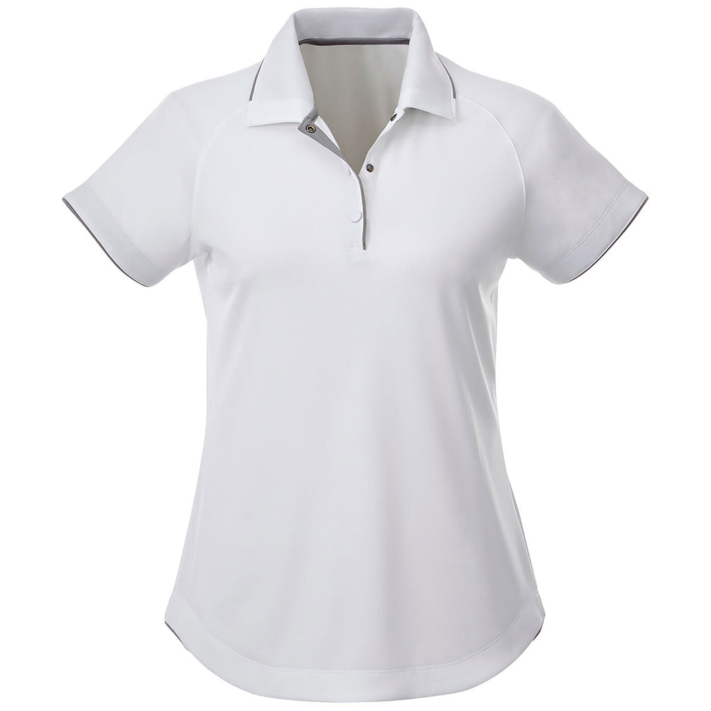 The logoed Elevate Women's White/Quarry Remus Short Sleeve Polo offers claShort Sleeveic style in six different trendsetting color options. The polyester double knit fabric has a matte finish with wicking capabilities, constructed to keep the wearer as cool and comfortable as can be. Other enticing features of this must-have embroidery logo polo shirt include snap closures, shaped seams and a tapered waist for a perfect fit. Add a corporate or company logo to the polo shirt and make it a part of the company apparel for casual days at the office, and anytime outside of the office. It also makes a great company giveaway item for recruiting events and trade shows.Corresponding Men's Style: Elevate Men's White/Quarry Remus Short Sleeve Polo
