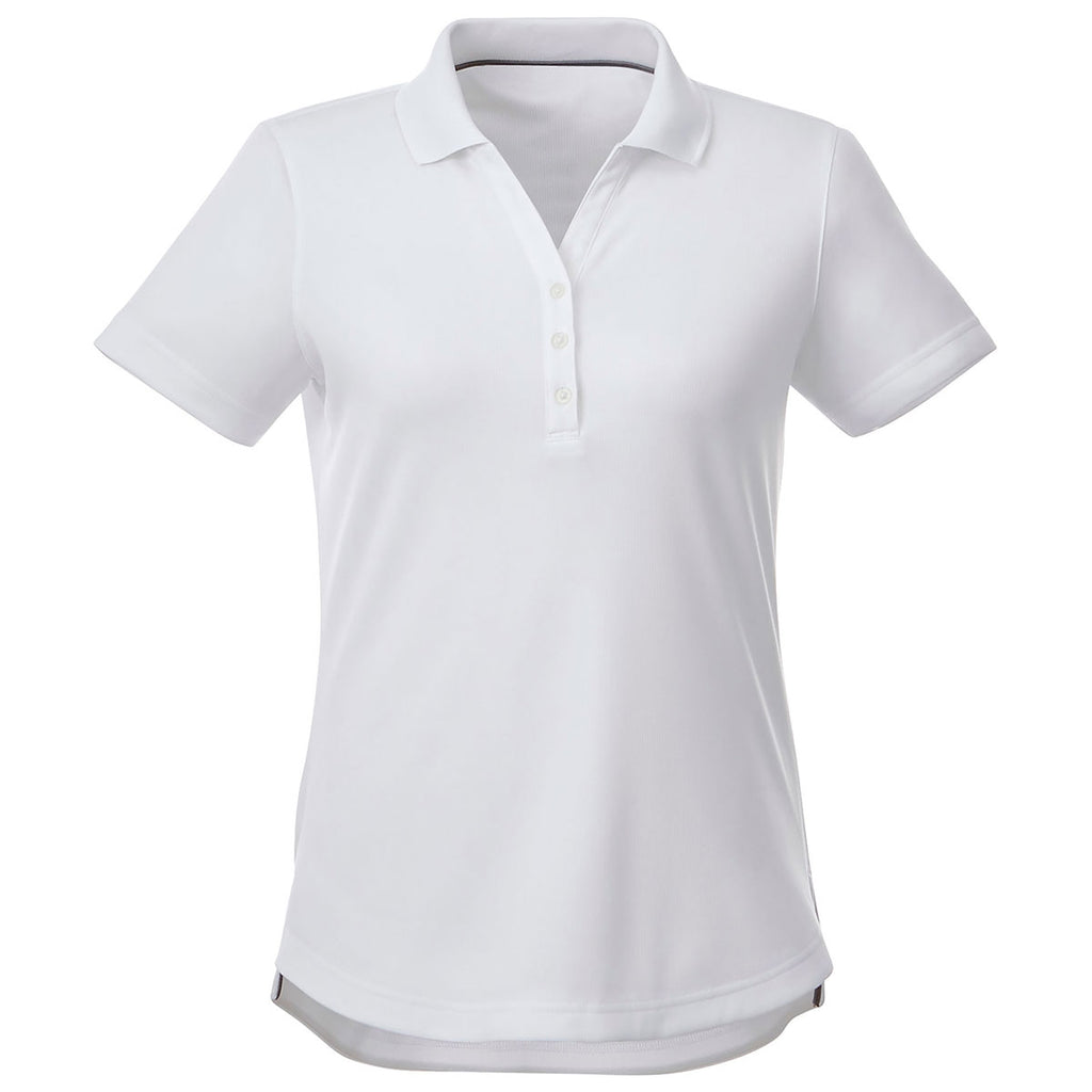 The custom logo Elevate Women's White Otis Short Sleeve Polo offers stylish comfort and a fashionable fit. Available in nine different colors, there is certain to be a color which goes perfectly with your company logo. Features of this double knit polo shirt include breathable fabric with moisture wicking capabilities, three button closures, snag resistant fabric and built-in UV protection (UPF 40+). The shaped seams and tapered waist make this women's polo shirt a must-purchase item. Hand this attractive logoed polo shirt out at corporate events, such as trade shows and recruiting events, to please the recipients and to get your company name out to the public.Corresponding Men's Style: Elevate Men's White Otis Short Sleeve Polo