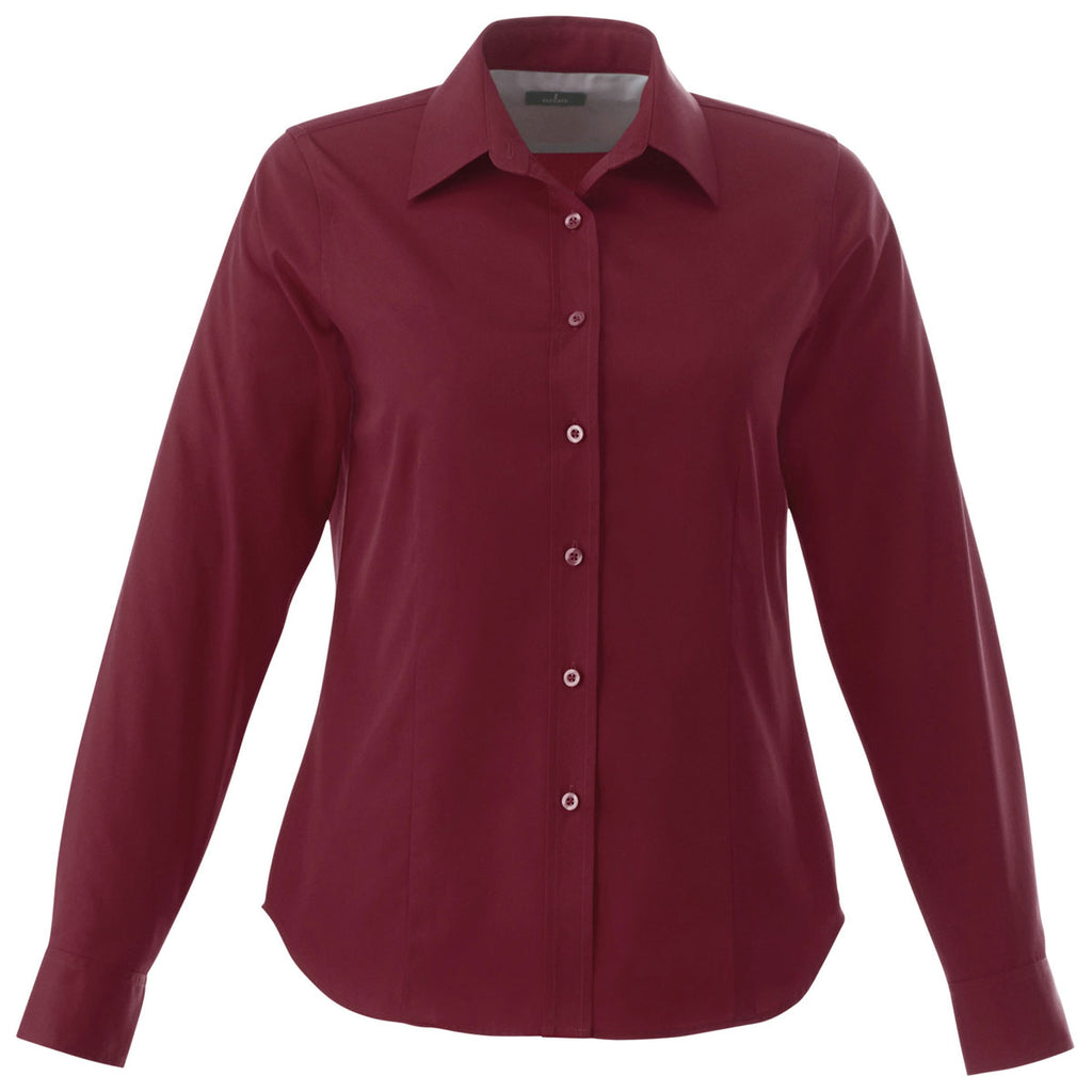 Whether you want a new uniform for your employees or just a present for them, the Elevate Women's Maroon Wilshire Long Sleeve Shirt branded with your custom logo is an ideal choice. It has shaped seams and a tapered waist for a more flattering fit. It is also a decoration-friendly design! It is also available in wide range of colors, so you can choose the one that perfectly matches your company logo. Whenever your employees want to look sharp, they will reach for the Elevate Women's Maroon Wilshire Long Sleeve Shirt. Advertise your brand in a modern way. Choose this high-quality shirt for your next corporate giveaway.Corresponding Men's Style: Elevate Men's Maroon Wilshire Long Sleeve Shirt