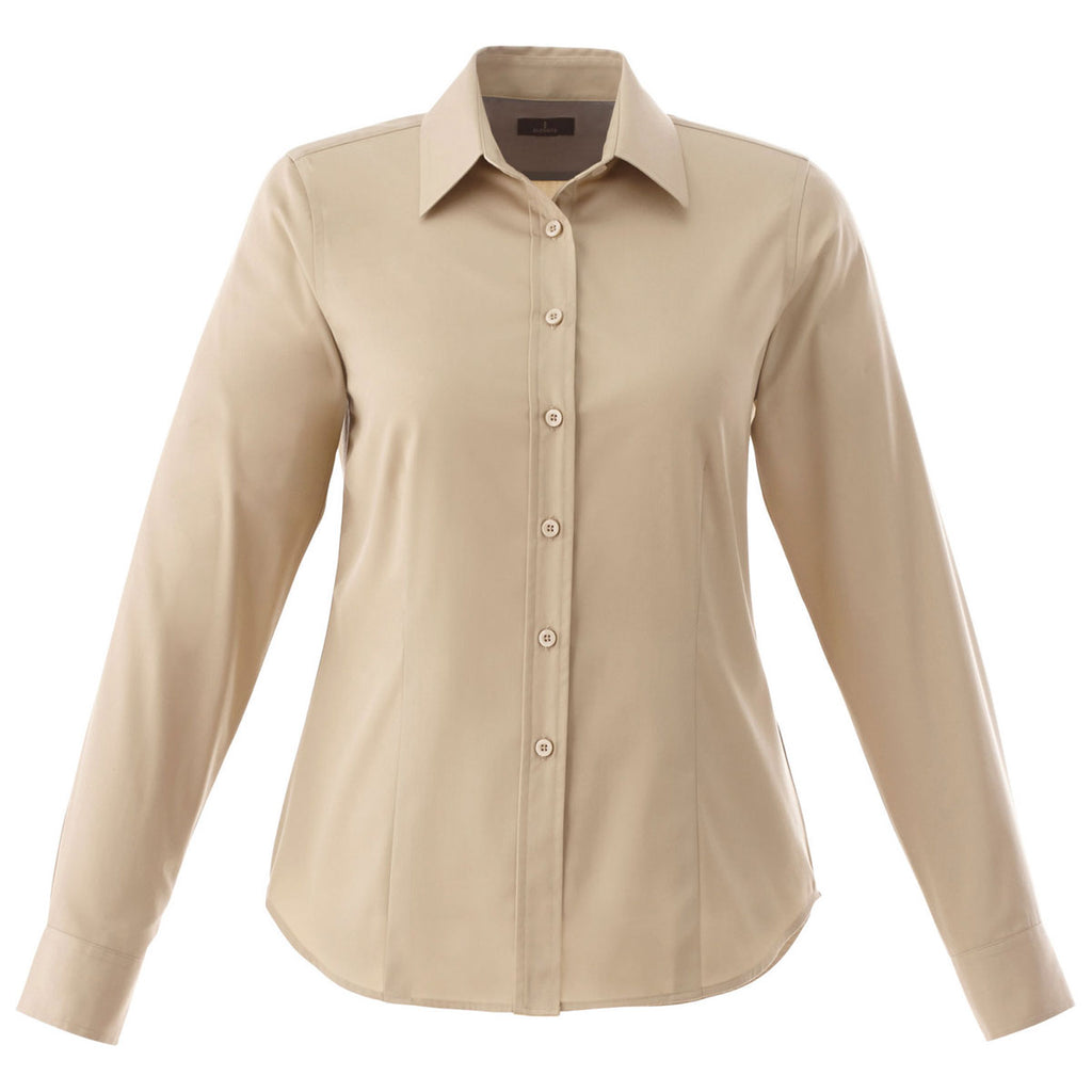 Whether you want a new uniform for your employees or just a present for them, the Elevate Women's Desert Khaki Wilshire Long Sleeve Shirt branded with your custom logo is an ideal choice. It has shaped seams and a tapered waist for a more flattering fit. It is also a decoration-friendly design! It is also available in wide range of colors, so you can choose the one that perfectly matches your company logo. Whenever your employees want to look sharp, they will reach for the Elevate Women's Desert Khaki Wilshire Long Sleeve Shirt. Advertise your brand in a modern way. Choose this high-quality shirt for your next corporate giveaway.Corresponding Men's Style: Elevate Men's Desert Khaki Wilshire Long Sleeve Shirt