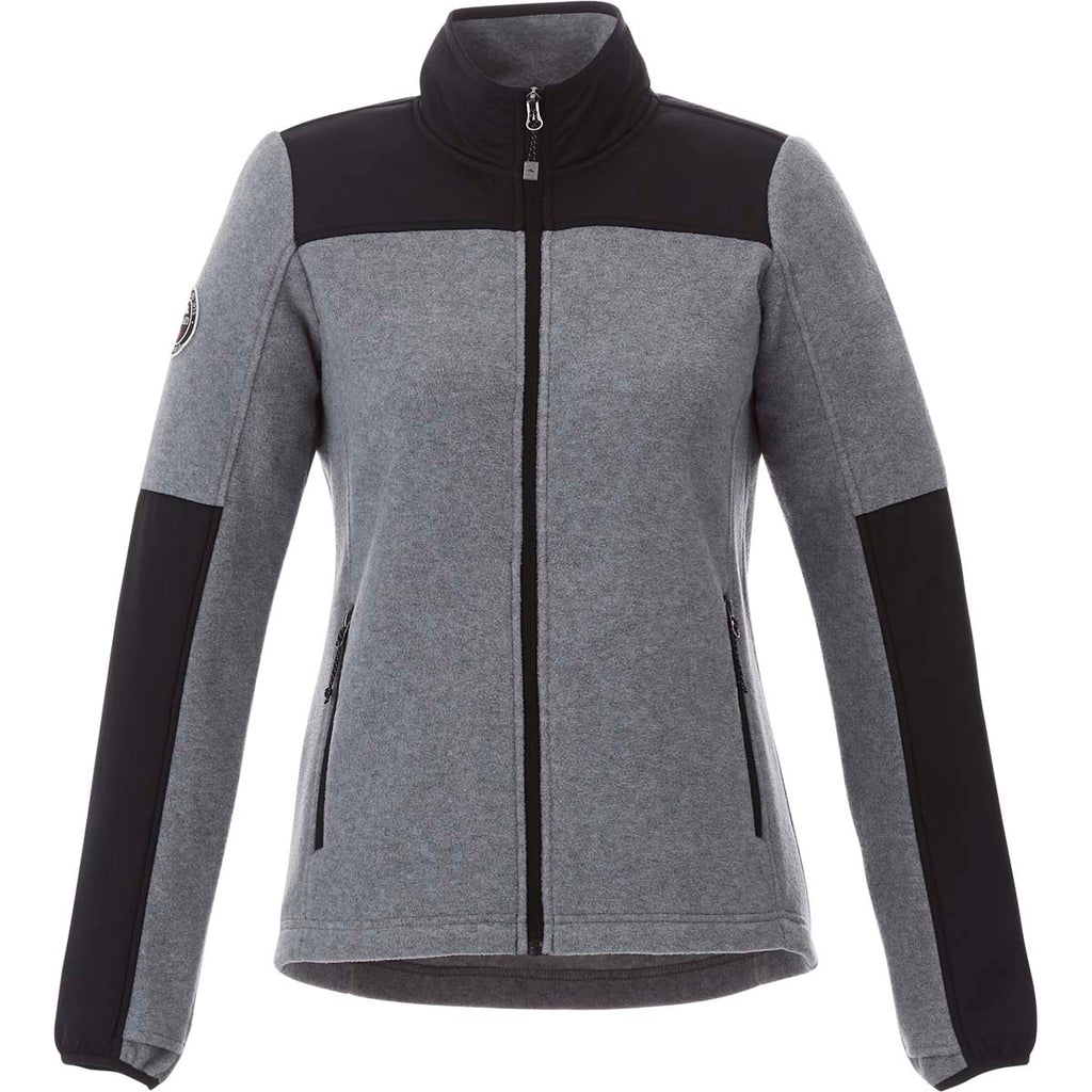 Get back to your corporate apparel roots by ordering one of the most stylish business jackets available, the Roots73 Women's Charcoal Mix/Black Briggspoint Jacket. The versatile jacket contains lightweight and highly durable 100% polyester anti-pill microfleece that resists the types of rips and tears experienced by other styles of jackets. Add a custom logo on the embroidered area to make a connection with potential customers at sales conferences. Shaped seams and a tapered waist create a flattering fit for all occasions. Use the interior media pocket to enjoy quick access to important handheld electronic devices.