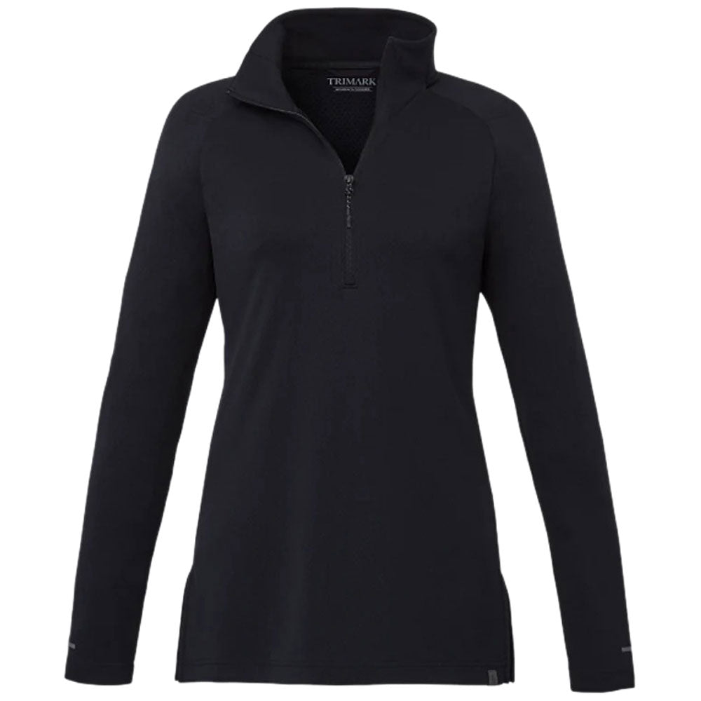 Enjoy a sustainable custom look with the Elevate Women's Black Asgard Eco Knit Quarter Zip. The breathable, moisture wicking poly blend offers UV sun protection making it great as a lightweight layer for the morning commute. Add a corporate logo to wear in the office or use as a uniform that is stylish and professional. Place an order today.Corresponding Men's Style: Elevate Men's Black Asgard Eco Knit Quarter Zip