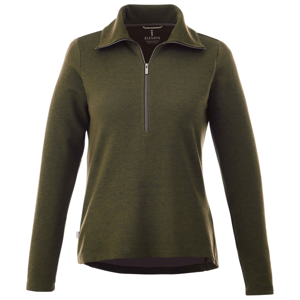 The Trimark Women's Loden Heather Stratton Knit Half Zip is an item which gives you that professional look and is perfect for branding with your custom company logo. Combined with other apparel items it looks casual and cozy. It is made of lightweight washable wool that makes it easy to wash and wear, and allows it to stay polished with snag resistance. It is available in four beautiful colors and is ideal for every modern woman who hates ironing. Include it in your next corporate giveaway and show your female employees you appreciate their hard work and dedication.Corresponding Men's Style:Elevate Men's Loden Heather Stratton Knit Quarter Zip