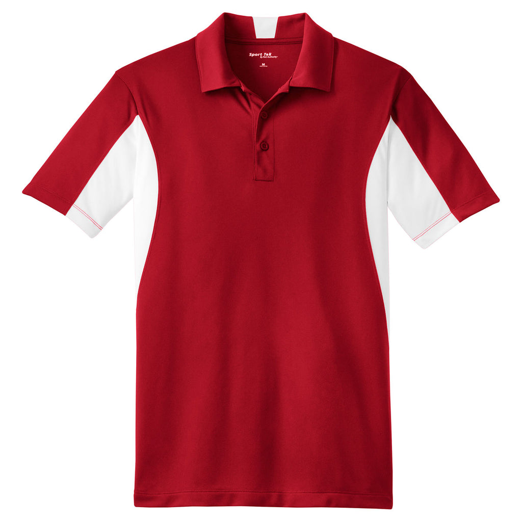 Sport-Tek Men's True Red/ White Tall Side Blocked Micropique Sport-Wick Polo