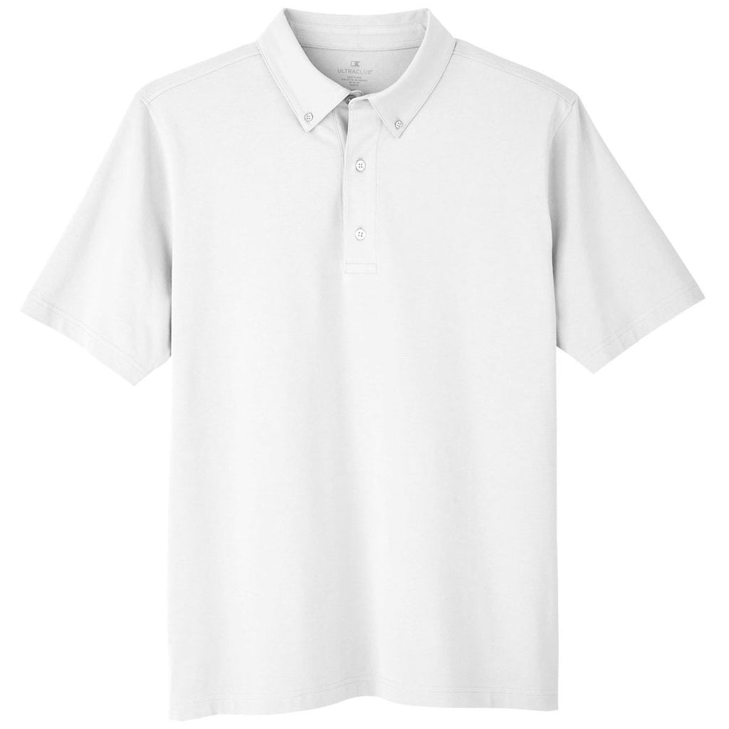 UltraClub Men's White Lakeshore Stretch Cotton Performance Polo