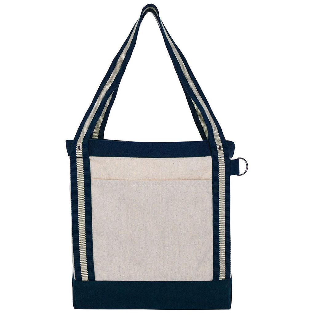 Koozie Group Navy V Natural Striped Recycled Cotton Boat Tote