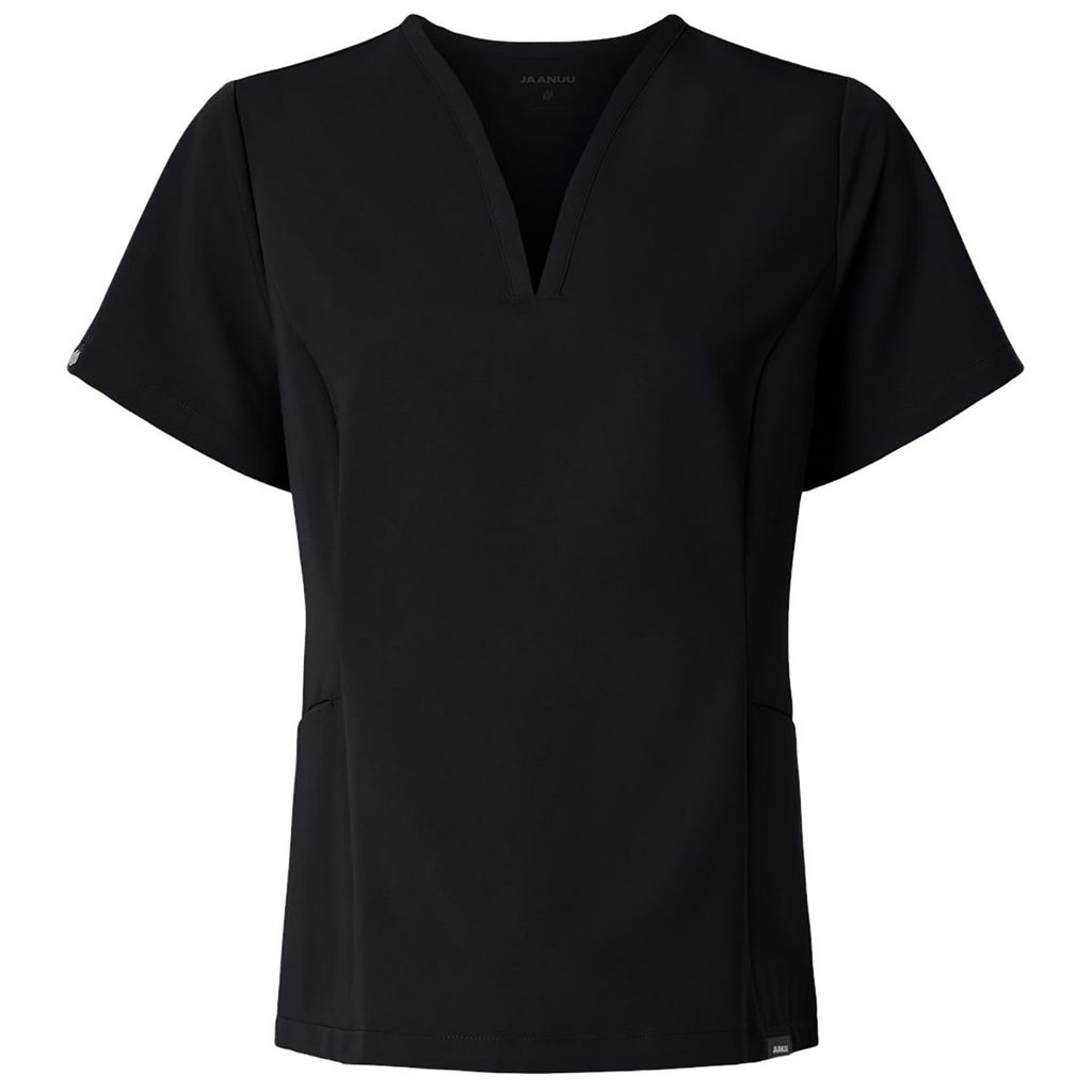 Jaanuu Women's Black Calix Fit & Flare Scrub V-Neck Top