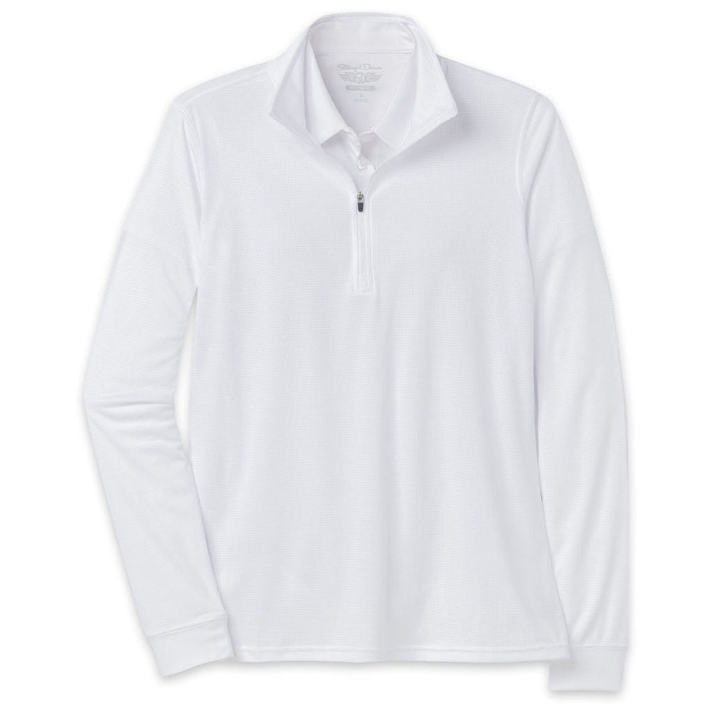 For a polished corporate layering piece, the Straight Down Women's White Aero Quarter Zip offers lightweight warmth and comfort. The soft, stretchy fabric moves easily and keeps you cozy without bulk. Its contoured fit and quarter-zip collar make it a versatile option for cool mornings, office travel, or branded apparel programs.