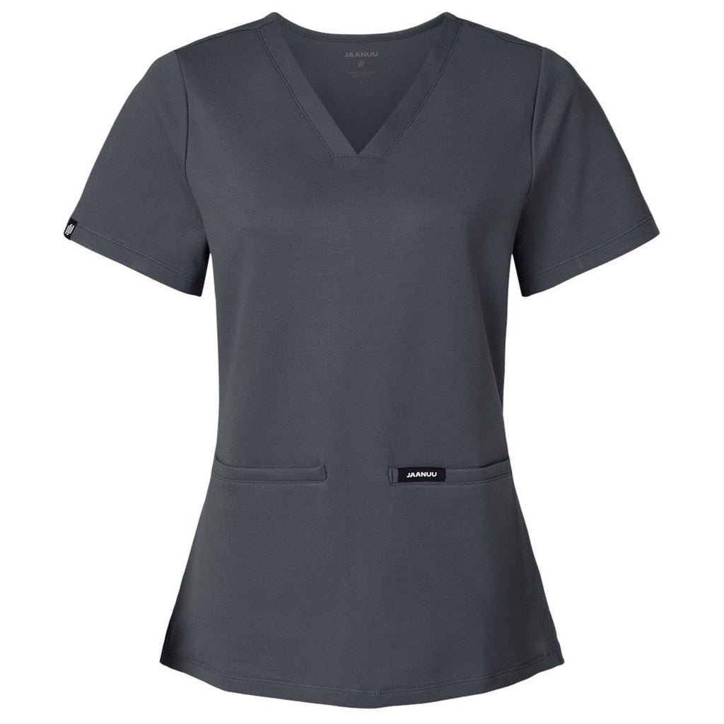Jaanuu Women's Carbon Grey Cesi Ultrasoft Scrub V-Neck Top