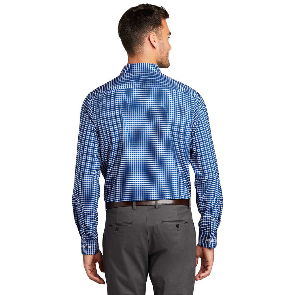 Sleek style is create with the custom embroidery Port Authority Men's True Blue/White City Stretch Shirt. Every professional needs a selection of well made button downs and this shirt provides. The comfort and performance of this classic are the epitome of corporate style. Even on those stressful days, this odor fighting, wrinkle resistant shirt has your back. Add a company logo to use as company uniforms or wear to corporate events. Made of a poly rich spandex blend, the open collar shirt has a French placket, pearlized buttons, and rounded, adjustable cuffs. Place an order today to have several of these in your personal wardrobe or as employee gifts when needed.Corresponding Women's Style: Port Authority Women's True Blue/White City Stretch Tunic