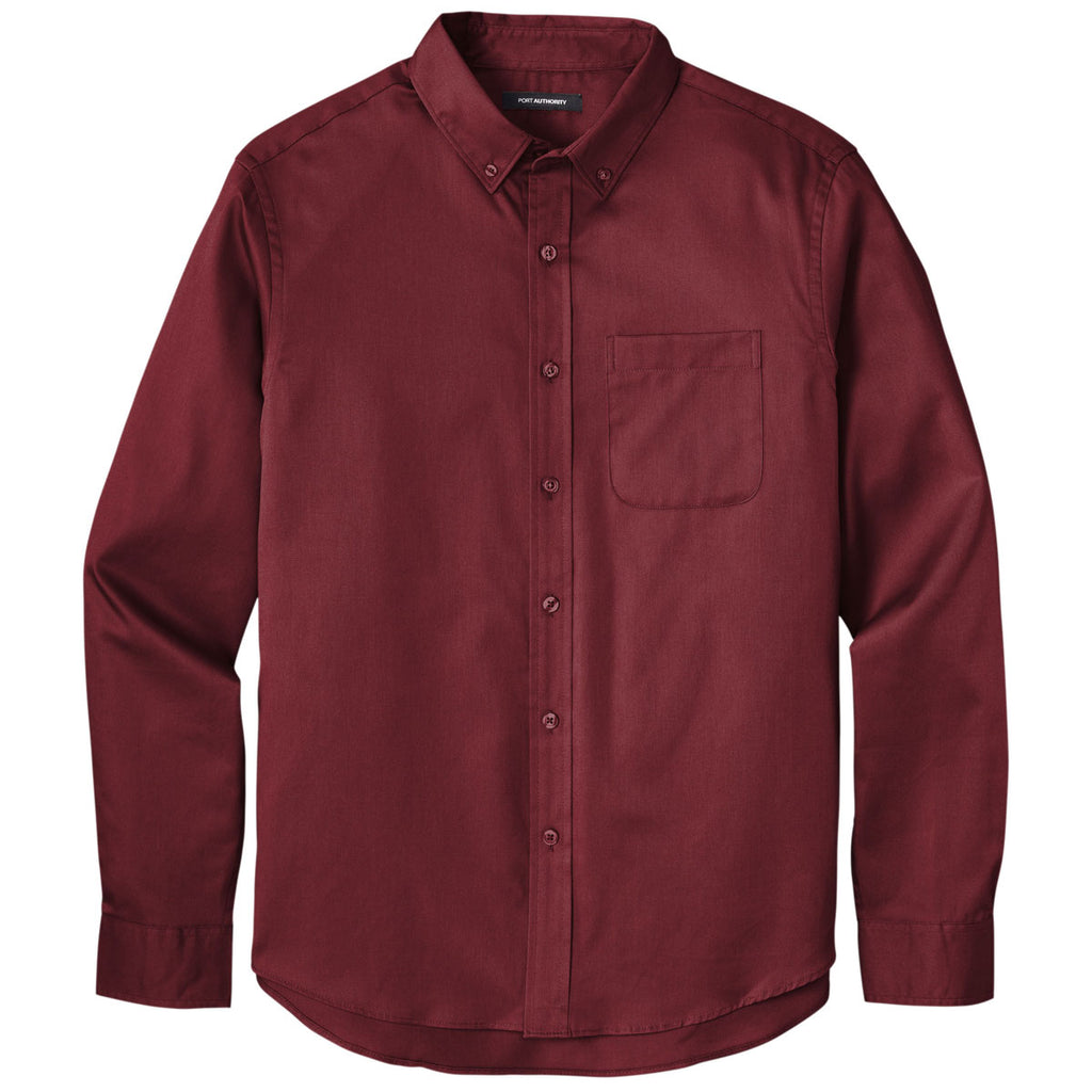 Performance meets fashion in the custom Port Authority Men's Burgundy Long Sleeve SuperPro React Twill Shirt. This wrinkle resistant button down is perfect for the office, but easily transitions to out and about. Add a company logo to use as corporate apparel for yourself or an entire company or for special events. Try a custom logo to build up your own wardrobe in a variety of colors or to add to your logoed apparel line. The button down shirt with button down collar and adjustable cuffs is ideal for the office, but can be nicely paired with a suit or jacket for a nice dinner out with family and friends.Corresponding Women's Style:Port Authority Women's Burgundy Long Sleeve SuperPro React