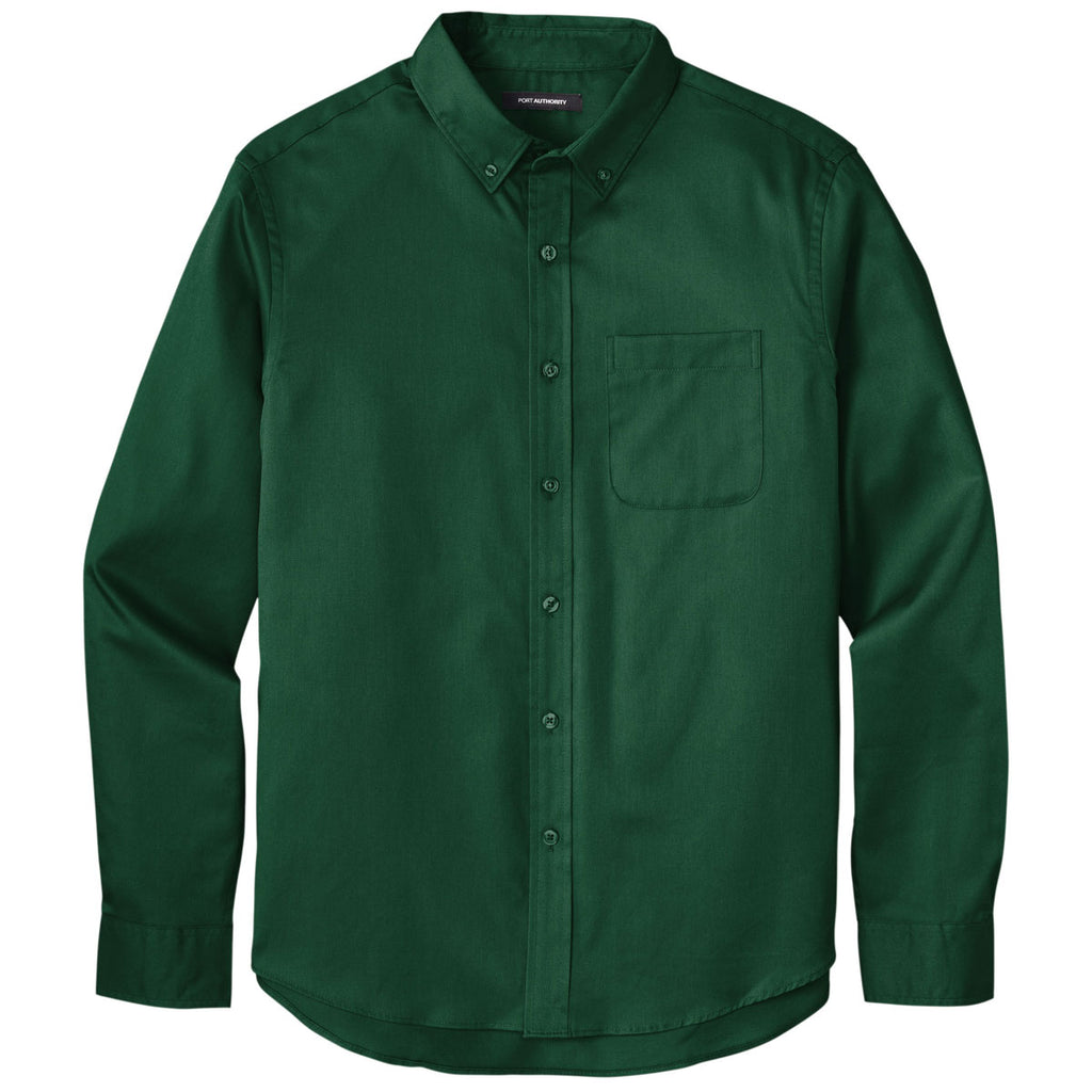 Performance meets fashion in the custom Port Authority Men's Dark Green Long Sleeve SuperPro React Twill Shirt. This wrinkle resistant button down is perfect for the office, but easily transitions to out and about. Add a company logo to use as corporate apparel for yourself or an entire company or for special events. Try a custom logo to build up your own wardrobe in a variety of colors or to add to your logoed apparel line. The button down shirt with button down collar and adjustable cuffs is ideal for the office, but can be nicely paired with a suit or jacket for a nice dinner out with family and friends.Corresponding Women's Style:Port Authority Women's Dark Green Long Sleeve SuperPro React