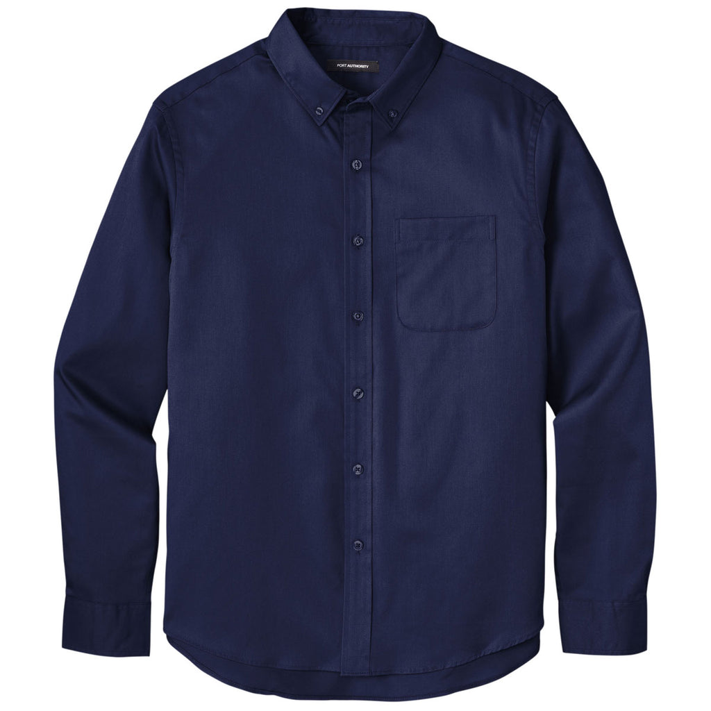 Performance meets fashion in the custom Port Authority Men's True Navy Long Sleeve SuperPro React Twill Shirt. This wrinkle resistant button down is perfect for the office, but easily transitions to out and about. Add a company logo to use as corporate apparel for yourself or an entire company or for special events. Try a custom logo to build up your own wardrobe in a variety of colors or to add to your logoed apparel line. The button down shirt with button down collar and adjustable cuffs is ideal for the office, but can be nicely paired with a suit or jacket for a nice dinner out with family and friends.