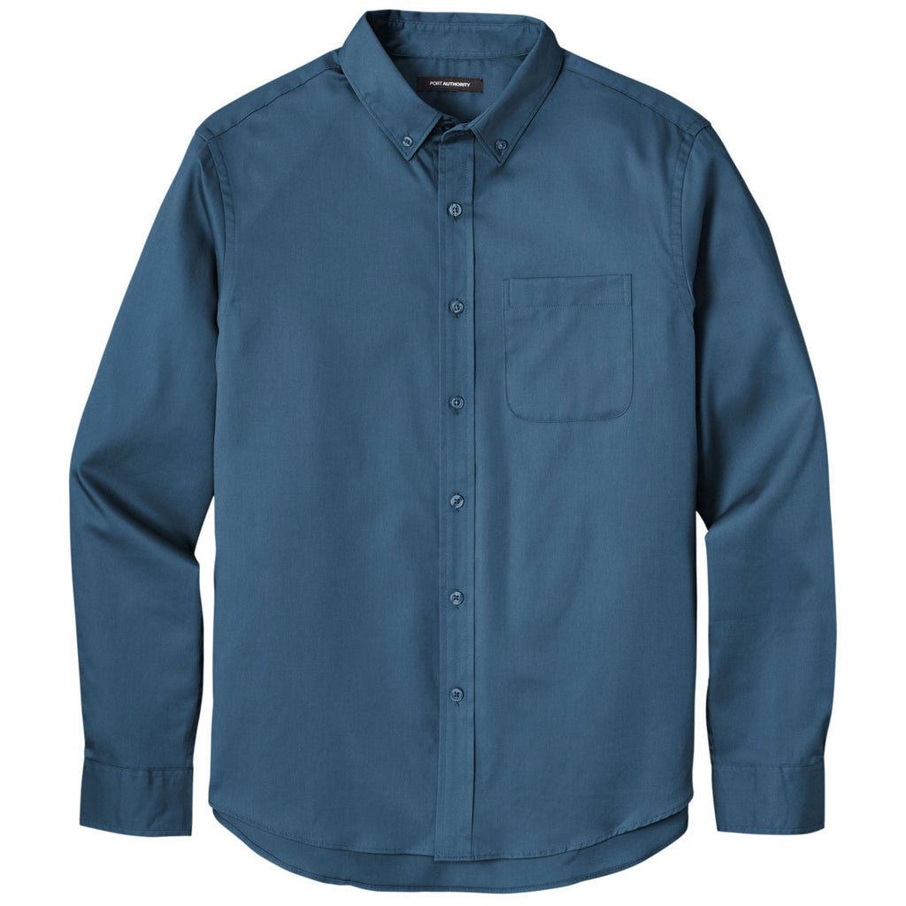 Performance meets fashion in the custom Port Authority Men's Regatta Blue Long Sleeve SuperPro React Twill Shirt. This wrinkle resistant button down is perfect for the office, but easily transitions to out and about. Add a company logo to use as corporate apparel for yourself or an entire company or for special events. Try a custom logo to build up your own wardrobe in a variety of colors or to add to your logoed apparel line. The button down shirt with button down collar and adjustable cuffs is ideal for the office, but can be nicely paired with a suit or jacket for a nice dinner out with family and friends.Corresponding Women's Style:Port Authority Women's Regatta Blue Long Sleeve SuperPro React