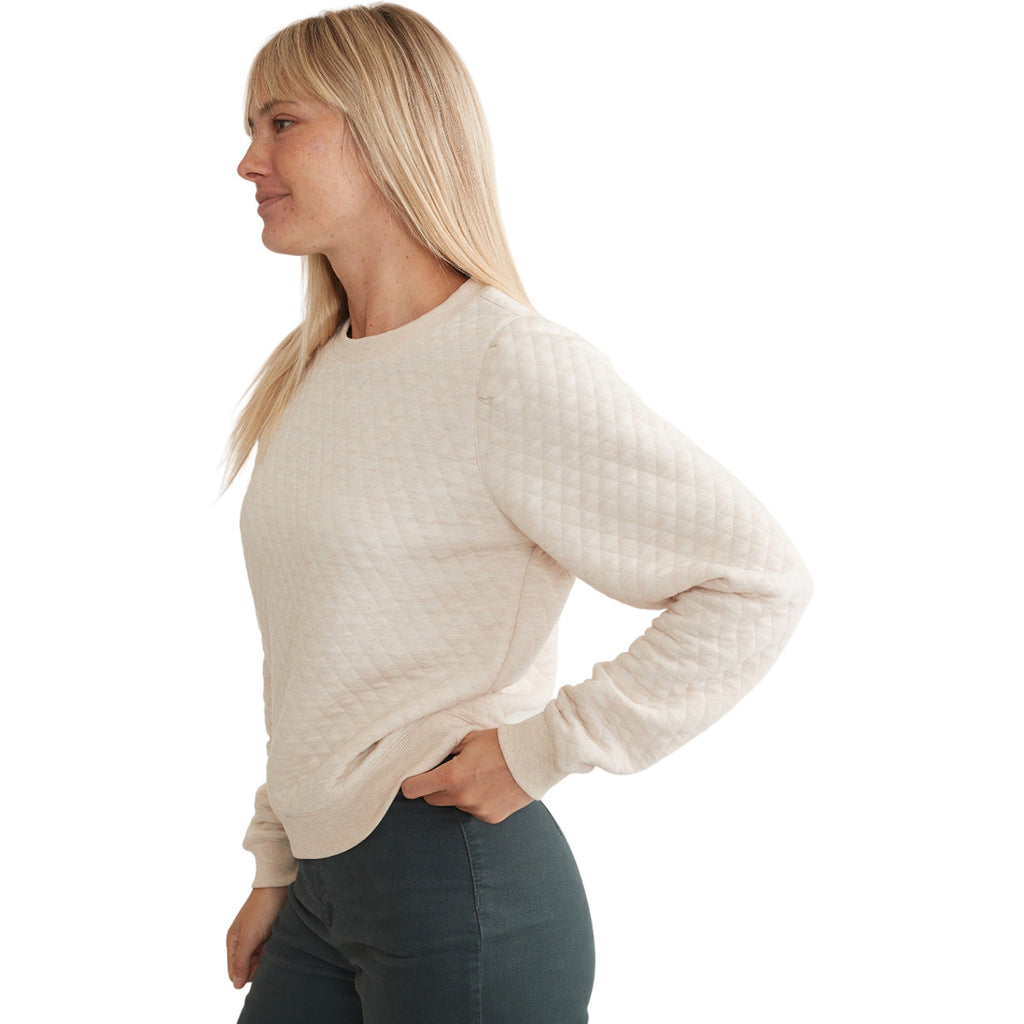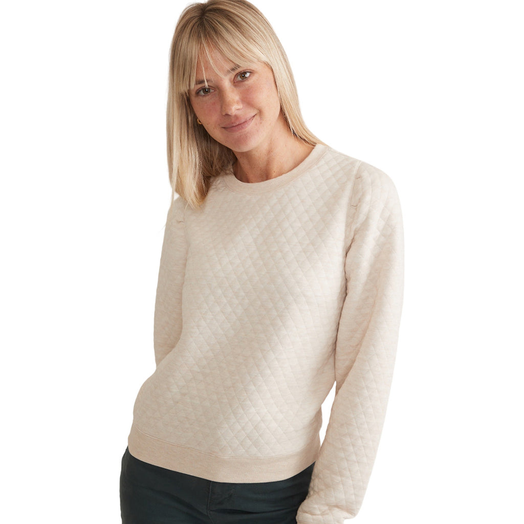 Marine Layer Women's Oat Heather Corbet Quilted Puff Sleeve Crewneck