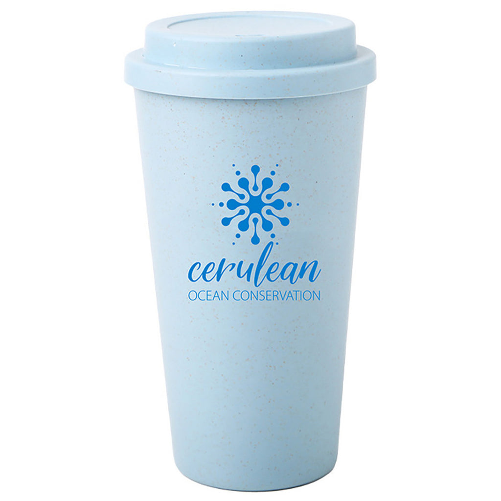Impact your industry with a corporate logoed Mixie Blue 16OZ Wheat Straw Mug. This slim cup is made of a mix of wheat straw and polypropylene plastic, fits in most cup holders, and comes with a sip-and-go lid. Add this to gift baskets, swag bags, or the selection at your store. Place an order today for these hand-wash recommended cups.The minimum order for this product is 50 pieces.
