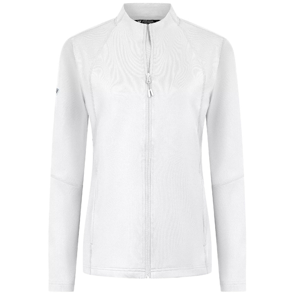 The Levelwear Women's White Mesa Full Zip provides a flattering fit and custom-ready details perfect for corporate layering. Its stretch fleece construction and contoured design offer warmth without bulk, making it ideal for commutes, conferences, or casual Fridays. Add your logo for a branded style that moves effortlessly between work and life.