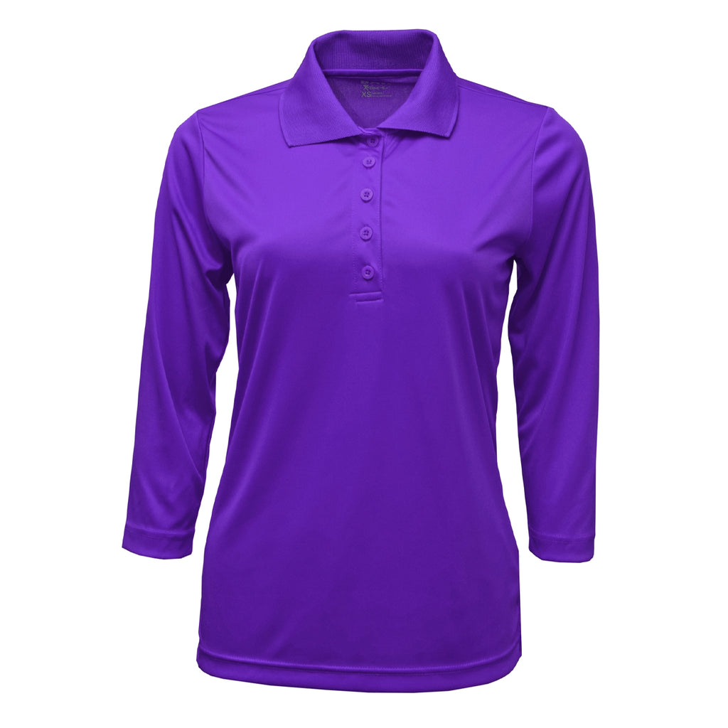 How many times have you heard that sleeves are too short or too long? If you have a company store or want to give women customers a garment that is practical as well as attractive, then consider our BAW Women's Purple Xtreme Tek 3/4 Sleeve Polo. This polyester version has a front placket with five buttons that are the same color as the shirt. Your custom logo will be well placed on this polo that will become a favorite of the ladies. They will appreciate the fabric that has fresh assurance with an anti-bacterial treatment. There are many fashionable colors in sizes XS to 3X.Corresponding Men's Style: BAW Men's Purple Xtreme Tek Long Sleeve Polo