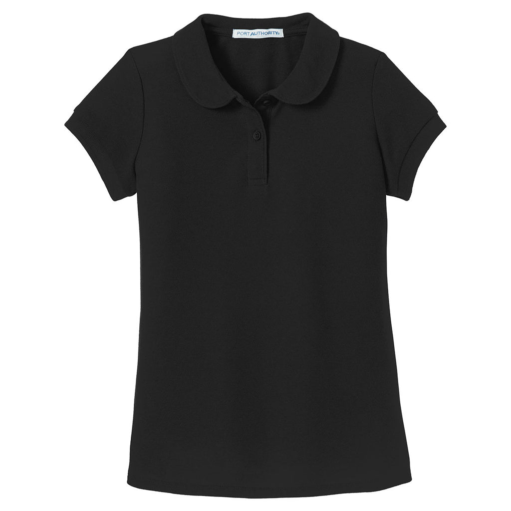 Port Authority Girls Black Silk Touch Peter Pan Collar Polo