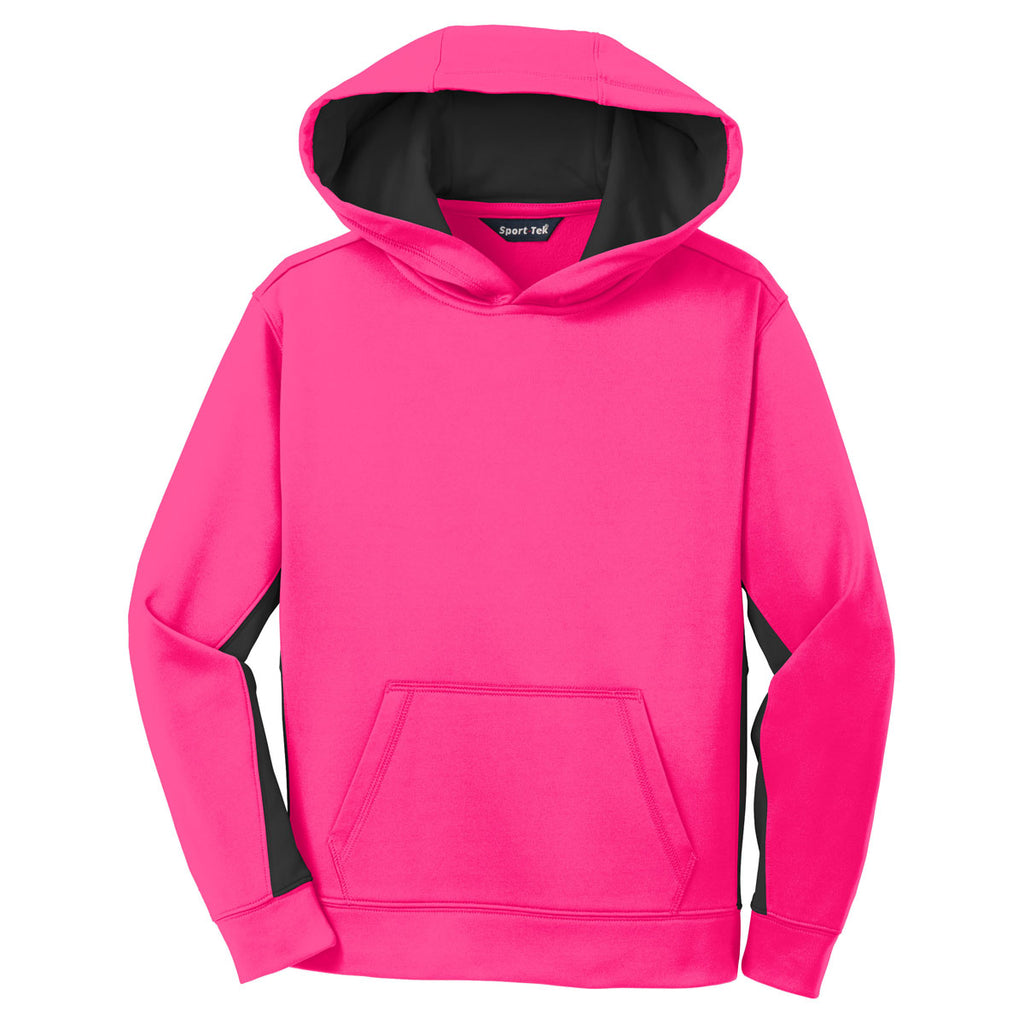 Sport-Tek Youth Neon Pink/Black Sport-Wick Fleece Colorblock Hooded Pullover