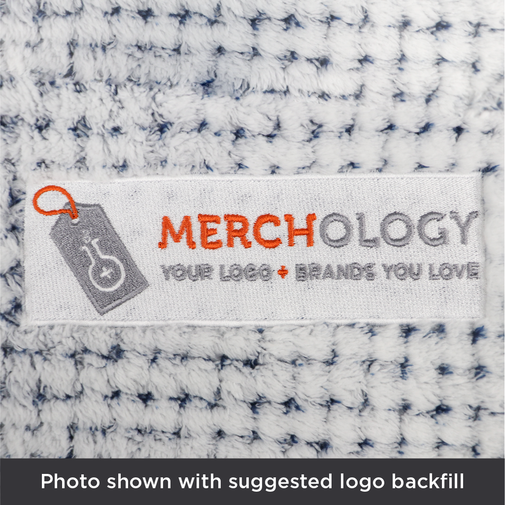 - Decoration: On corner of blanket on lighter-colored side. We recommend including a backfill in your logo for this product, as thin lines and small text may not be visible when embroidered due to the plush material. Any logos containing small details will automatically be paired with a solid color backfill for best results.